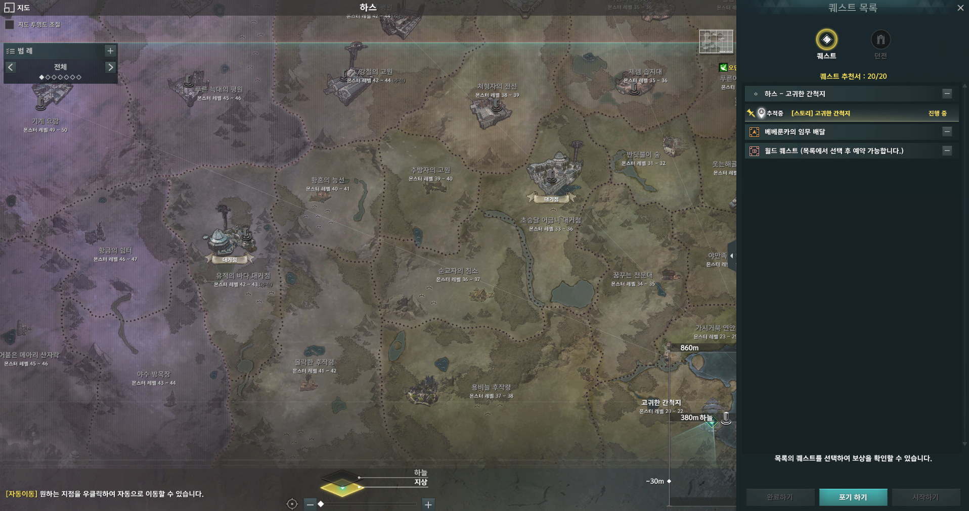 메인퀘스트만 쫓아가다가는 매번 레벨때문에 막혀서