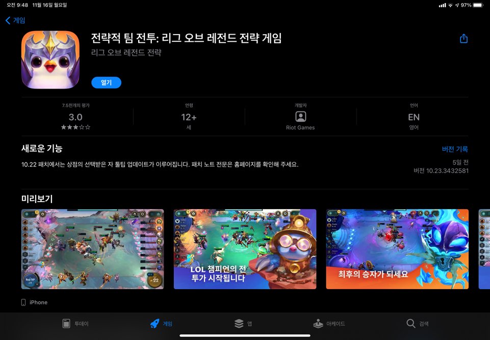 아이패드를 샀으면 당연 롤토체스를 설치해야죠 -