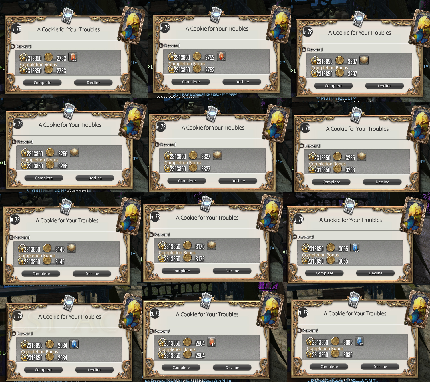대량납품의뢰 퀘스트로 3개의 커피쿠키를 제출하는 퀘스트인데 3번까지 가능하니 한번의 수주권으로 총 9개 납품이 된다.